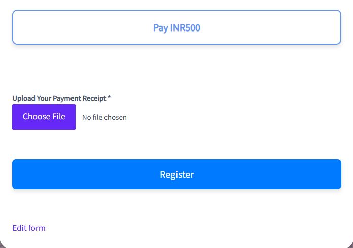 Upload your payment receipt and Click on Register